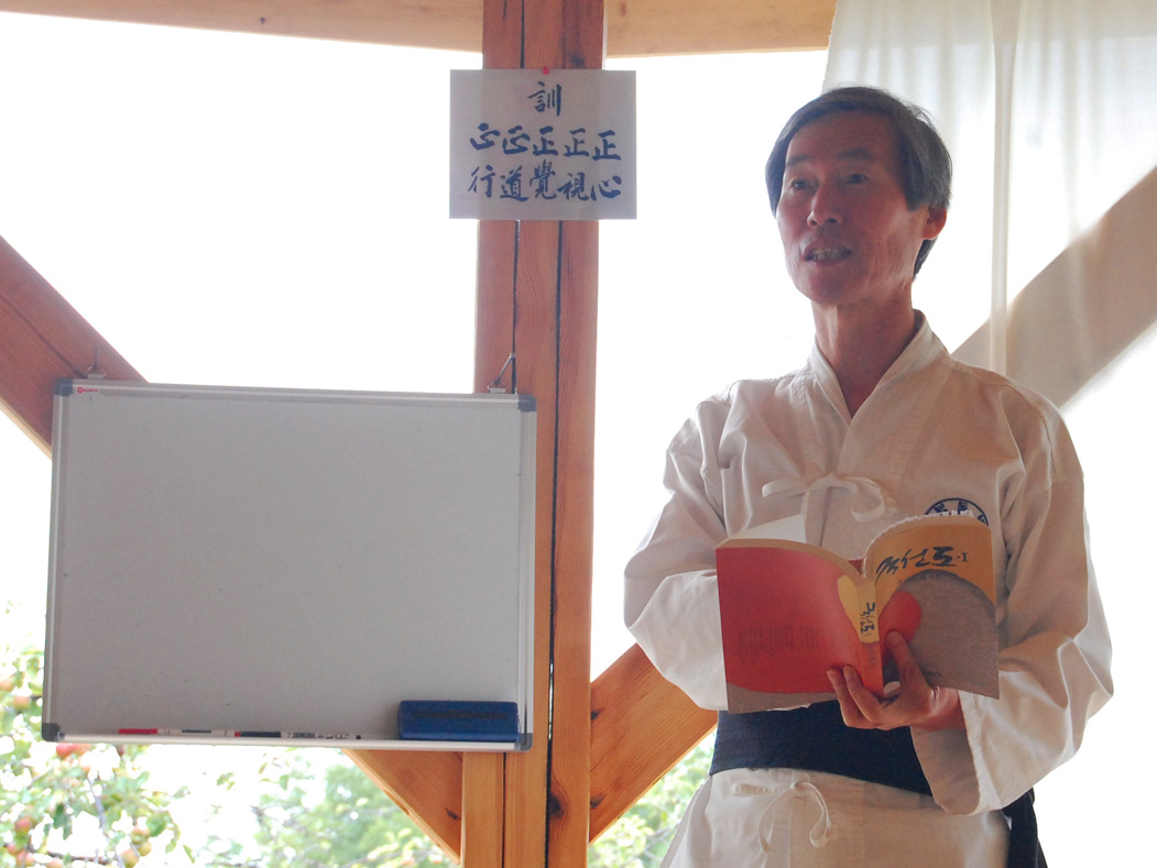 – Это современное общество, нам приходится много думать. Например, в корейском обществе верховные судьи очень любят кук-сан-до. Один верховный судья как-то пригласил меня и сказал: «Люди нашей профессии очень любят эту практику, потому что мы работаем головой, эта практика помогает нам». Как я сказал вам, не думайте об этих правилах слишком серьезно. Нужно читать книги, исследовать; не стоит переставать думать. Посредством танджонного дыхания мы получим достаточное количество энергии и будем правильно ее применять. Сможем больше исследовать, сможем работать больше. В каждой области социальной жизни мы сможем стать хорошими лидерами. И мы можем сделать общество лучше. Можно жить успешной социальной жизнью. Эта практика не для того, чтобы бежать от общества, не для того, чтобы самоустраниться из социальной жизни. Мы входим в активную социальную жизнь, преуспеваем в ней и даем людям рядом с нами хороший пример и хорошее влияние.